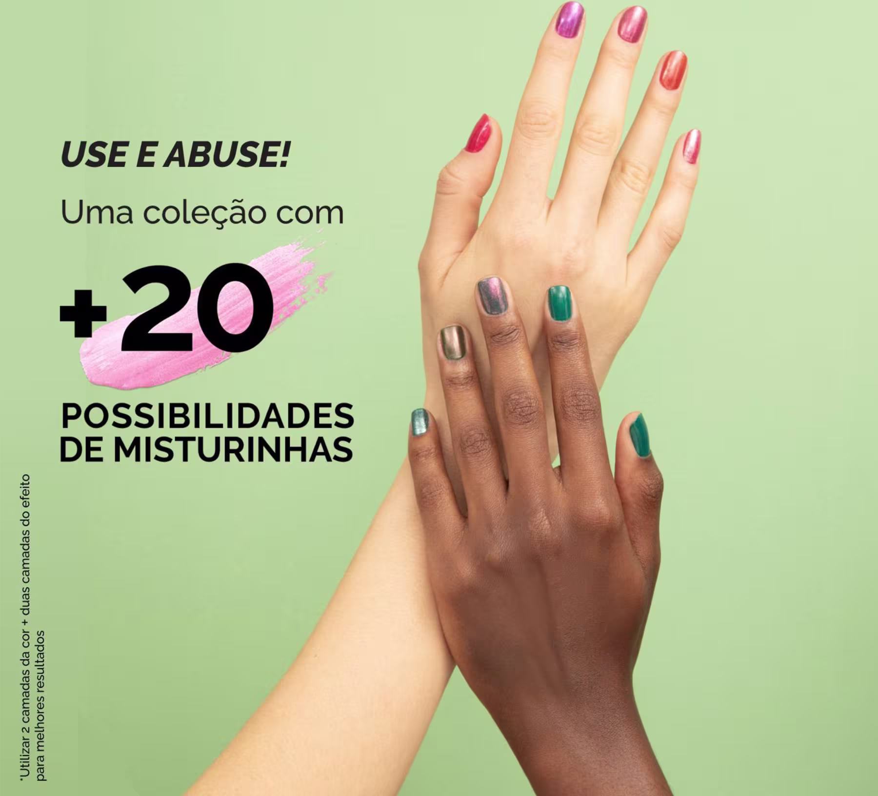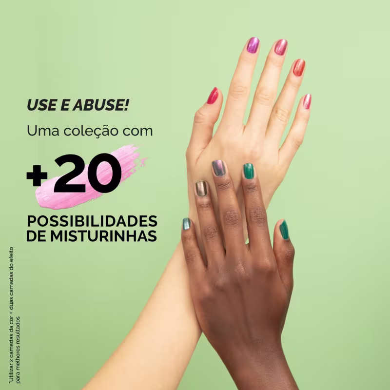 Remova qualquer resíduo de esmalte antigo com um removedor de esmalte. Corte e lixe as unhas para o formato desejado, isso ajudará a deixar a aplicação mais uniforme e sem irregularidades. Abra o frasco do esmalte Joga pro Universo e retire o excesso de produto no lado do gargalo do frasco. Aplique a primeira camada do esmalte uniformemente nas unhas, começando do centro da unha e seguindo para as laterais, esse passo é importante para garantir uma boa cobertura. Após a primeira camada, espere alguns minutos até que esteja completamente seco ao toque. Isso garante que a segunda camada fique bem aplicada. Se quiser um efeito mais intenso ou uma cor mais uniforme, aplique uma segunda camada de esmalte, espere novamente secar por alguns minutos. Para garantir mais brilho e aumentar a durabilidade do esmalte, finalize com uma camada de top coat ou base extra brilho.