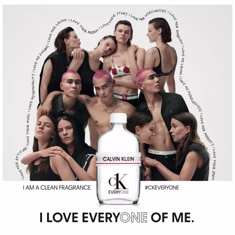 CK Everyone é um perfume Calvin Klein unissex cítrico aromático. Simboliza o espírito da nova geração, da liberdade de expressão e da diversidade com uma fragrância compartilhada para todos os gêneros. CK Everyone , de Calvin Klein , é um perfume multifacetado e perfeitamente equilibrado, fresco e ao mesmo tempo quente e provocante. Traz óleo essencial de laranja e gengibre que se misturam com os acordes de chá azul e notas aquosas, criando uma aura energizante com a combinação das notas de fundo das madeiras de cedro e patchouli, e com a sensualidade do âmbar. Criada no legado icônico de CK One, CK Everyone é a primeira fragrância vegana e “clean” de Calvin Klein que contém ingredientes de origem natural e é formulada com álcool derivado naturalmente. Seu frasco de vidro é reciclável e acompanha uma fita elástica que faz homenagem ao clássico underwear da marca.