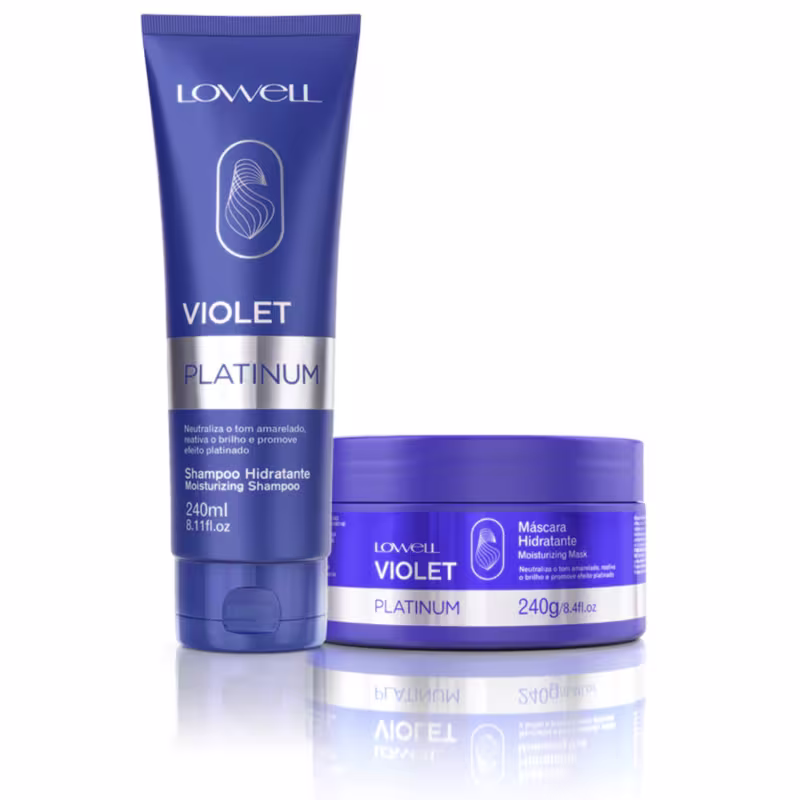 Lowell Violet Platinum Home Kit possui fórmula rica em pigmentos violetas acinzentados hidratantes, que não apenas neutralizam os tons indesejados, como também dão brilho.