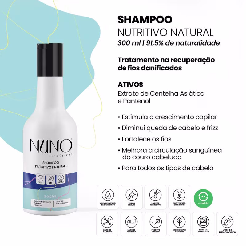 O Kit Capilar da Nuno é a dupla ideal para cabelos nutridos, macios e protegidos. Composto por Shampoo e Condicionador, este kit oferece uma experiência de cuidado intensivo para todos os tipos de cabelo, proporcionando nutrição, hidratação e fortalecimento.