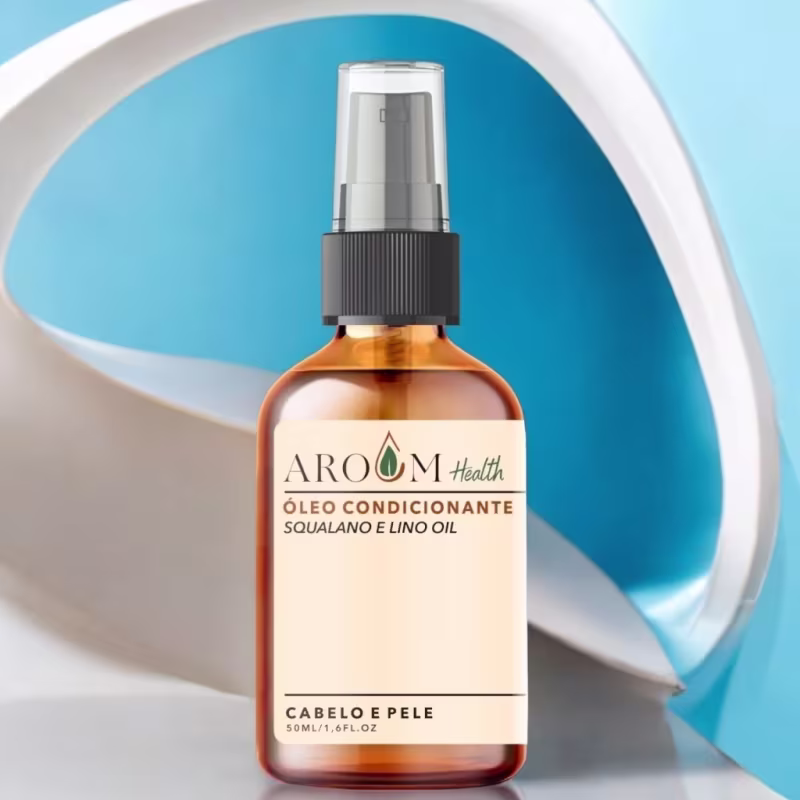 Óleo Capilar Condicionante Squalano e Lino oil da Aroom Health. Fórmula incrível combina a riqueza do óleo de linhaça dourada e o Squalano de cana de açúcar, criando um blend luxuoso que transforma seus cabelos.