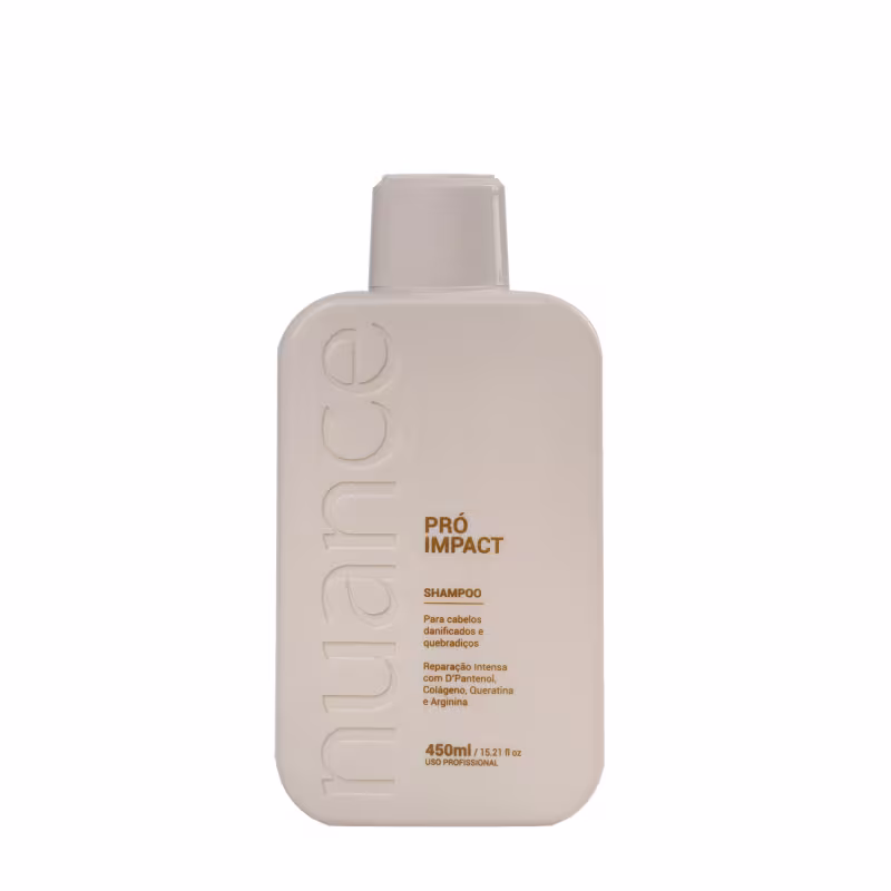 Benefícios do Kit Pró Impact Nuance: Cabelos Fortes e Resilientes: O Shampoo e o Condicionador Pró Impact são enriquecidos com colágeno e aloe vera, ingredientes que ajudam a fortalecer e nutrir profundamente cada fio.Nutrição e Hidratação Intensiva: A máscara de tratamento possui uma fórmula concentrada com queratina, manteiga de karité e óleos nobres, que promovem uma hidratação profunda, maciez e brilho incomparável.Controle de Frizz: Os ativos presentes no kit auxiliam no alinhamento dos fios, deixando-os livres de frizz e com um toque suave e sedoso.Ação Fortalecedora e Desembaraçante: O Condicionador Pró Impact é ideal para desembaraçar, enquanto age na reestruturação dos fios, combatendo a queda e quebra. Principais Ingredientes: Colágeno Hidrolisado e Queratina: Auxiliam na reestruturação dos fios, conferindo força e resistência.Óleo de Coco, Argan e Macadâmia: Nutrem e selam as cutículas, deixando os cabelos brilhantes e protegidos.Aloe Vera: Hidrata profundamente e ajuda a controlar o frizz, proporcionando maciez e suavidade.Manteiga de Karité: Rica em ácidos graxos e vitaminas, restaura a umidade e a elasticidade dos fios. Modo de Uso: Shampoo Pró Impact: Com os cabelos molhados, aplique o shampoo massageando suavemente o couro cabeludo e os fios. Deixe agir por alguns minutos e enxágue bem. Repita se necessário.Condicionador Pró Impact: Após o shampoo, aplique o condicionador ao longo dos fios, massageando suavemente. Deixe agir por alguns minutos e enxágue completamente.Máscara Pró Impact: Com os cabelos limpos e úmidos, aplique a máscara no comprimento e pontas. Deixe agir de 5 a 10 minutos para uma hidratação intensa e enxágue bem. Precauções: Uso externo. Evite o contato com os olhos; caso ocorra, enxágue abundantemente com água.Conserve em local fresco, ao abrigo da luz e calor excessivo.Mantenha fora do alcance de crianças. Suspenda o uso em caso de irritação e procure orientação médica. Ingredientes Naturais e EficazesFormulado com uma poderosa combinação de ativos, o Kit Pró Impact Nuance é a escolha ideal para quem deseja cabelos fortes, hidratados e com brilho duradouro. Aproveite todos os benefícios de um tratamento completo e experimente a transformação de seus fios com o cuidado profissional que você merece!