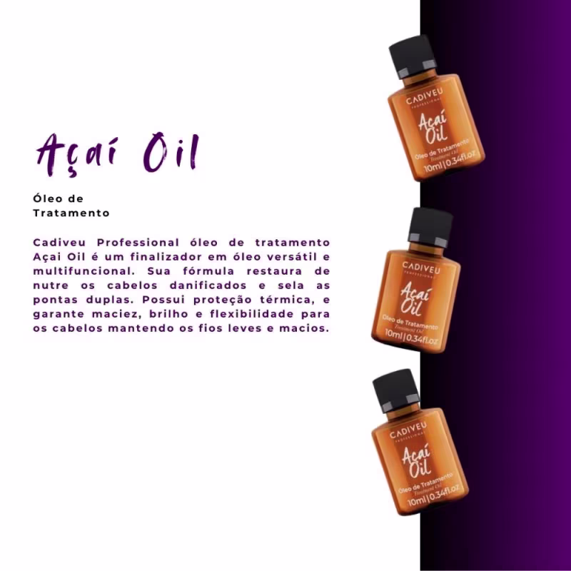 O Kit 5x Cadiveu Óleo de Tratamento Açaí Oil é um conjunto de óleos capilares desenvolvido para nutrir, fortalecer e proporcionar brilho intenso aos fios. Com fórmula leve e de rápida absorção, ele hidrata profundamente, reduz o frizz e protege contra agressões externas, garantindo cabelos mais saudáveis e radiantes.