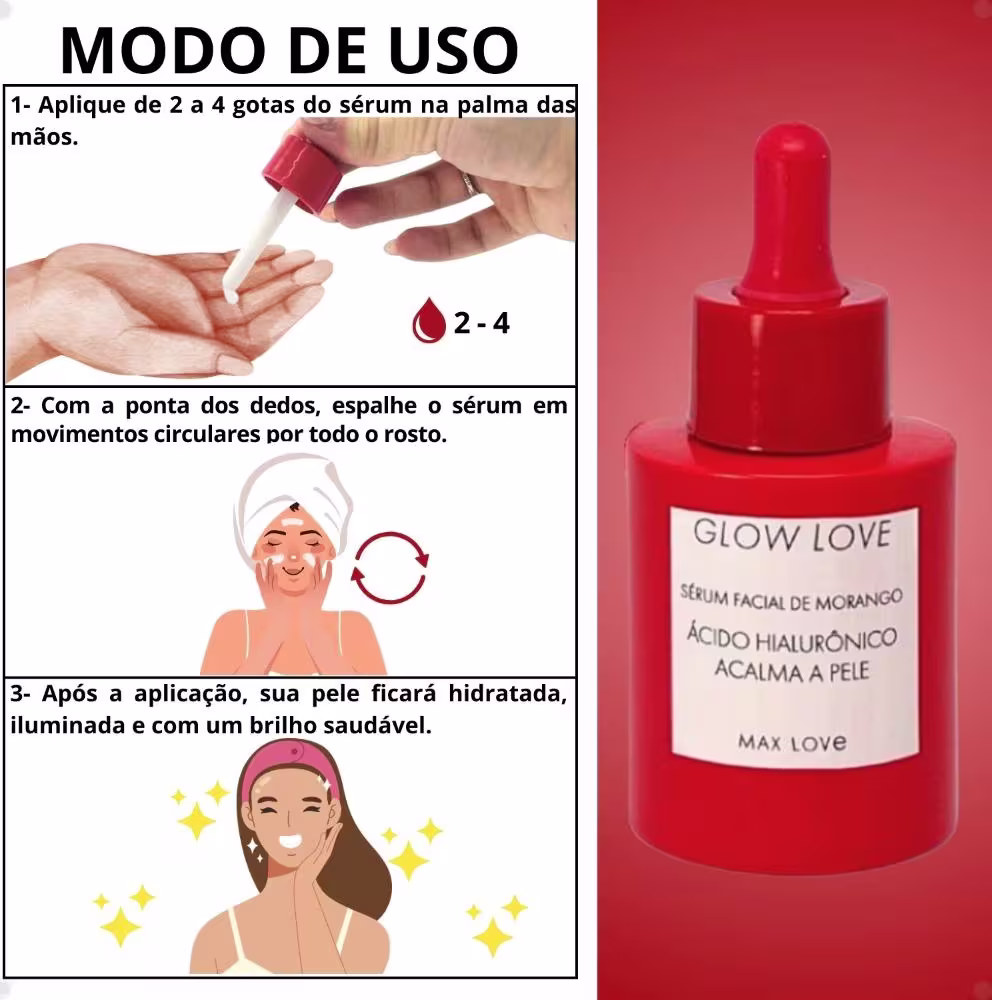 Não sei o CEPSérum Facial Max Love Ácido Hialurônico Glow Love Morango 30ml