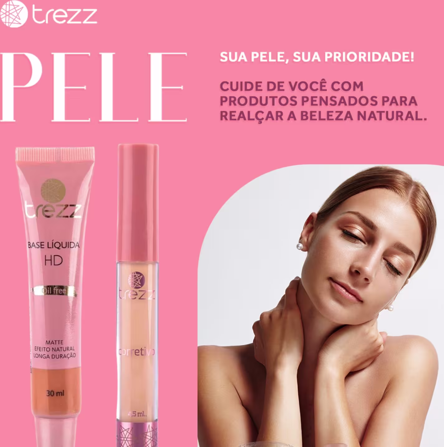 deal para todos os tipos de pele, o Corretivo Líquido Trezz C06 é fácil de aplicar e se adapta perfeitamente ao seu tom de pele, oferecendo uma aparência fresca e radiante durante todo o dia.