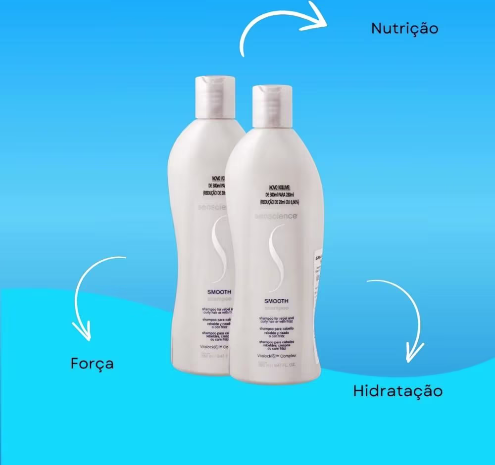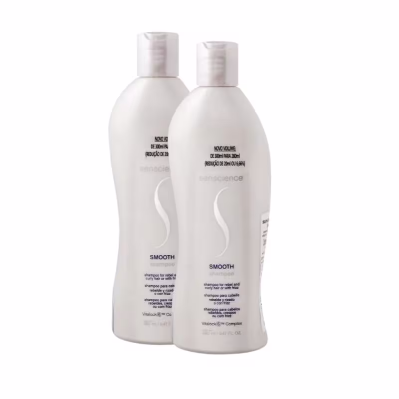 Não sei o CEPShampoo para cabelos rebeldes, com frizz, cacheados ou grossos. Senscience Smooth Shampoo limpa, disciplinando os fios e proporcionando maciez.