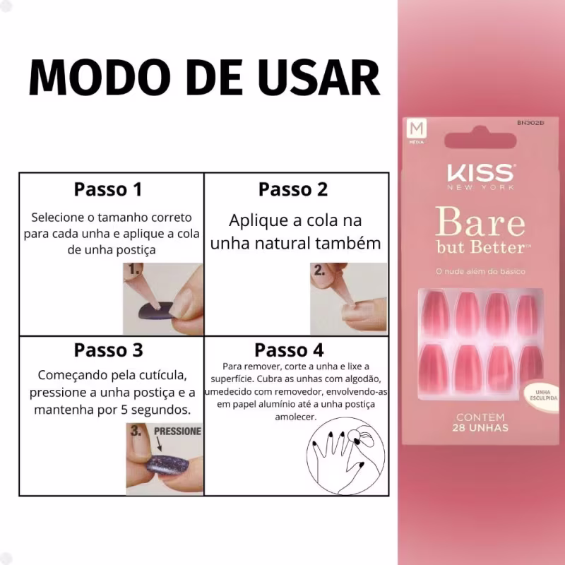 Quando aplicadas corretamente, as unhas postiças Nude Nude podem durar de 5 a 7 dias, dependendo dos cuidados e da atividade diária. Evite exposição excessiva a água e outros líquidos logo após a aplicação para garantir maior durabilidade.