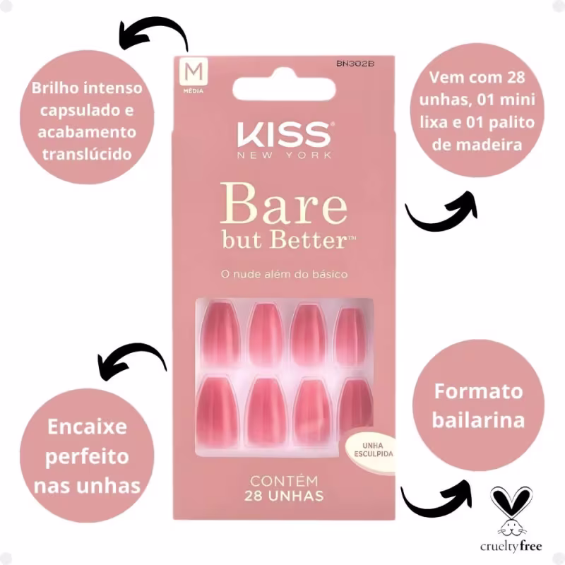 As unhas postiças Nude Nude da linha Bare But Better possuem uma intensa camada de brilho e efeito degradê que traz naturalidade e beleza sem igual as suas unhas. Além disso, possuem a Tecnologia patentiada e ajuste flexível. No formato bailarina, a unha Nude Nude é para você que prefere ser discreta mas não deixa de ser você mesma. Vem com 28 unhas, 01 mini lixa e 01 palito de madeira.