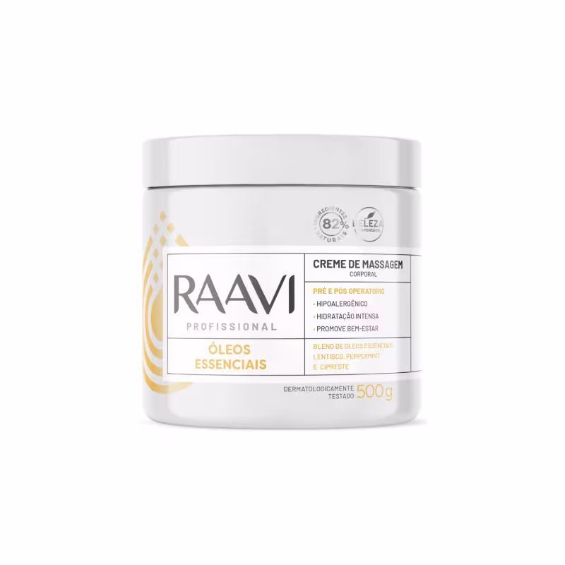- 1 Creme Massagem Pré Pós Operatório Óleo Essencial Raavi 500g.