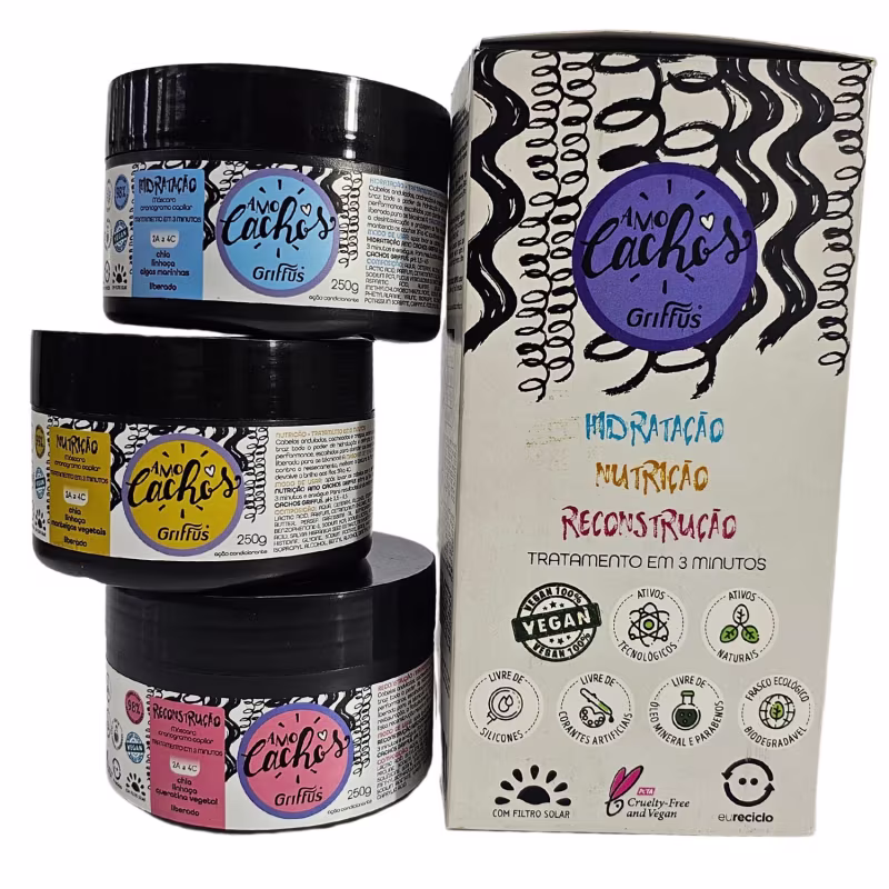 Griffus Amo Cachos Kit Cronograma Capilar 3 Máscaras de 250g cada