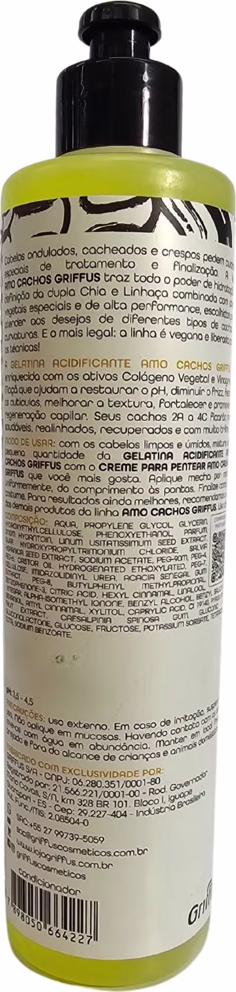 Não sei o CEPGriffus Amo Cachos Gelatina Acidificante Redutor de pH 2A a 4C Vegano 420g