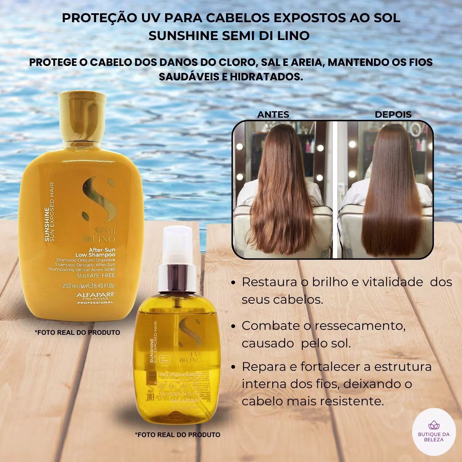 Cuide dos seus cabelos com a linha Semi di Lino Sunshine After-Sun e mantenha-os saudáveis e radiantes em qualquer estação.