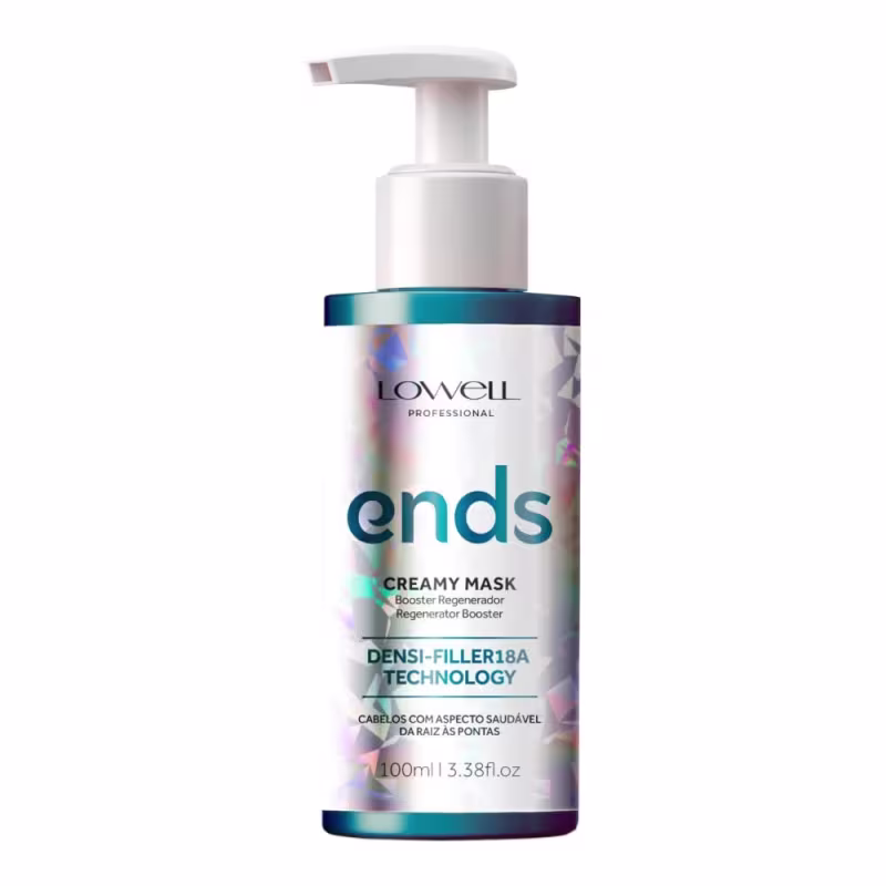 Lowell Ends Booster - Máscara Capilar 100ml: proporciona fios mais densos, resistentes e com cutículas regeneradas. Além disso, promove selagem imediata, controle do frizz e um toque acetinado, reduzindo a quebra e deixando os cabelos radiantes e saudáveis.