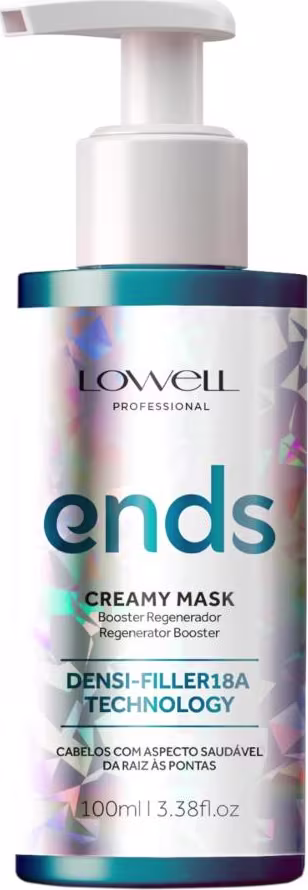 Lowell Ends Booster - Máscara Capilar 100ml: proporciona fios mais densos, resistentes e com cutículas regeneradas. Além disso, promove selagem imediata, controle do frizz e um toque acetinado, reduzindo a quebra e deixando os cabelos radiantes e saudáveis.