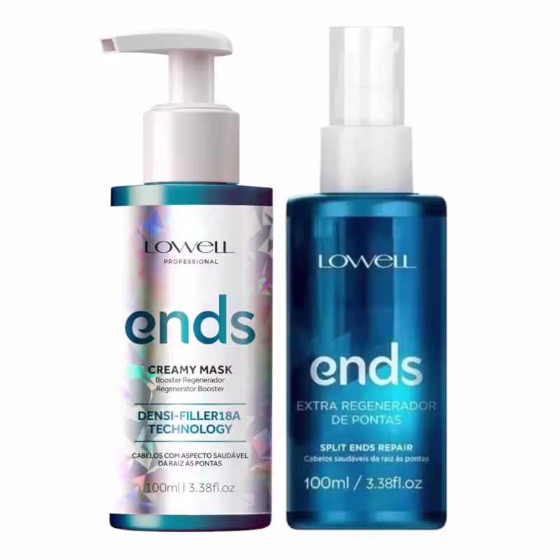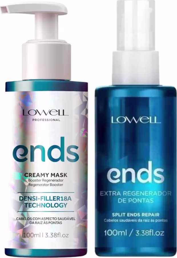 Kit com leave-in e booster para cabelos danificados. Lowell Ends Regenerador Trio ajuda a conquistar fios longos e saudáveis, além de combater a quebra e a formação de pontas duplas.