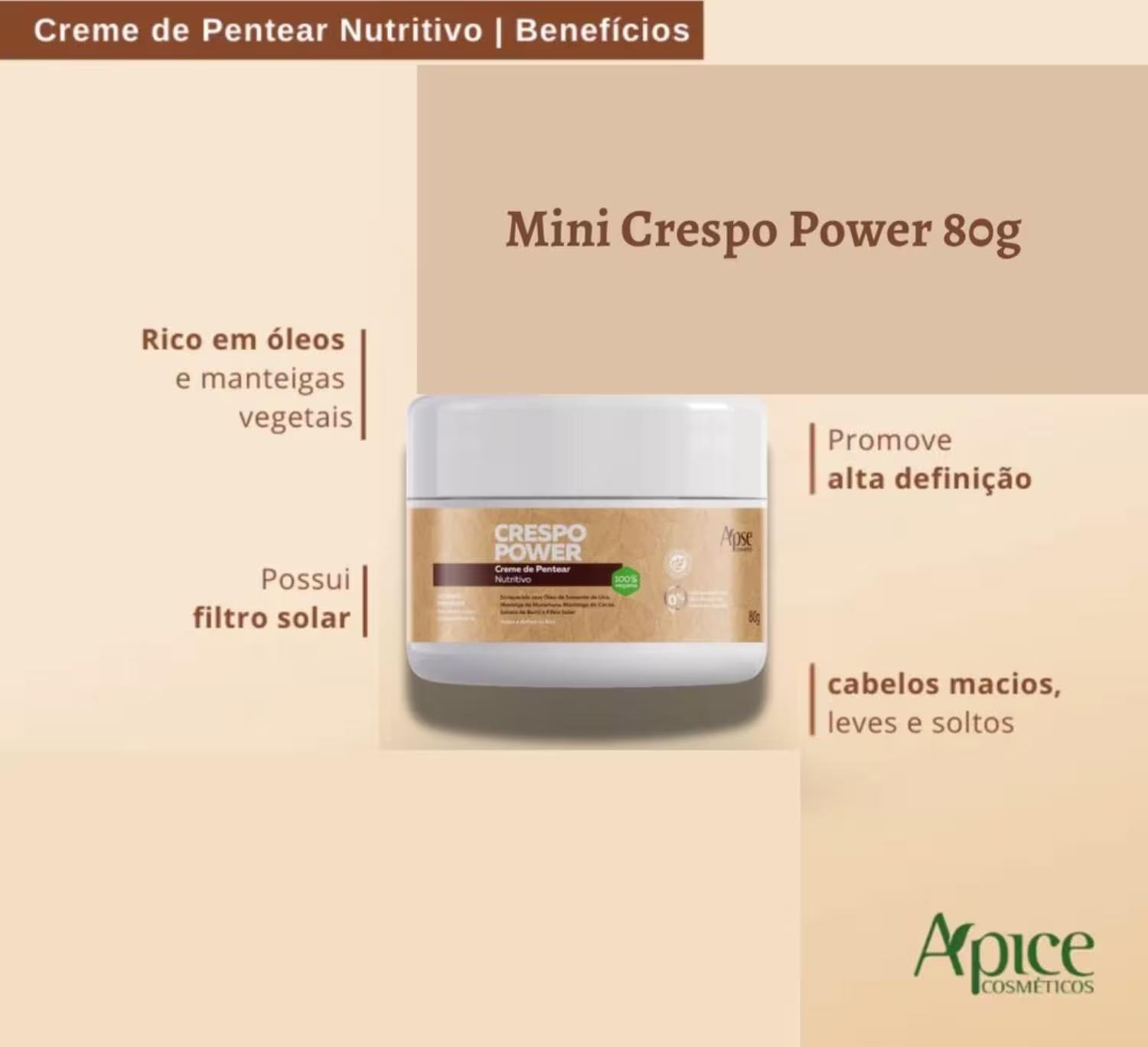 Ideal para cabelos crespos e porosos, Os cabelos crespos merecem um cuidado especial, juntamos ativos vegetais maravilhosos para deixar os fios nutridos, macios e com brilhosos!