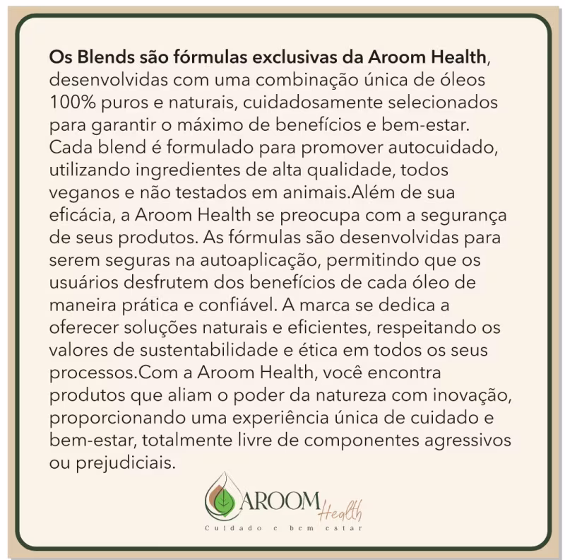 Fórmula exclusiva - Blend de óleos para tratamento couro cabeludo 100% puro natural - 50 ml Aroom Health.