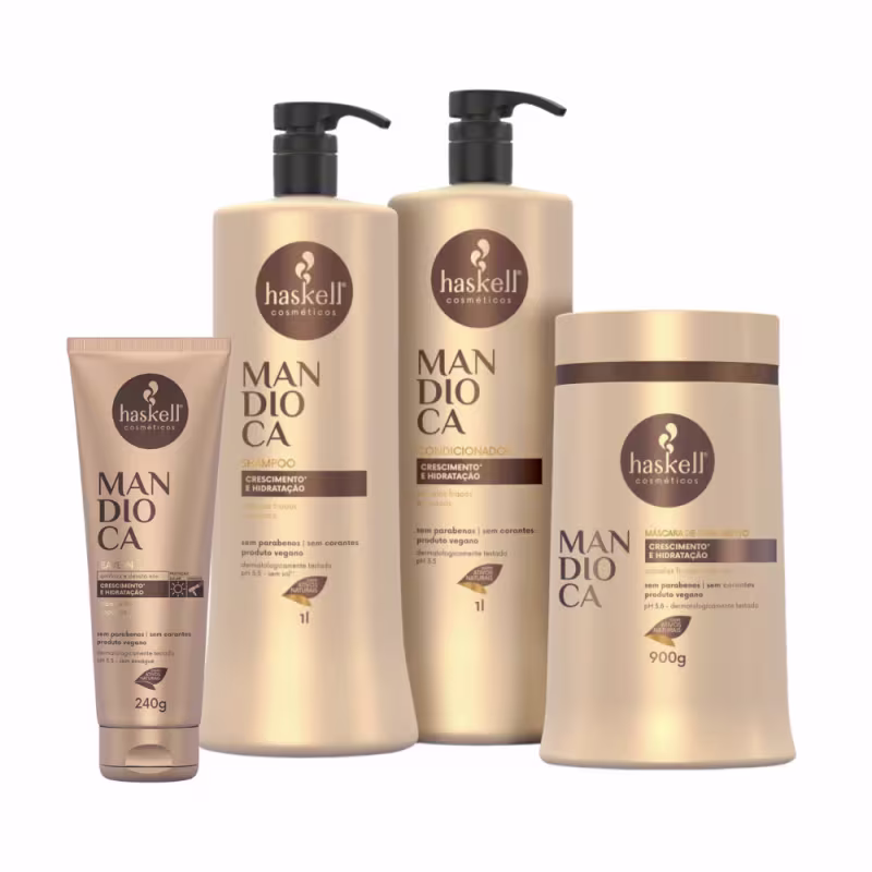 A linha Mandioca é rica em vitaminas e nutrientes essenciais para o fortalecimento e crescimento saudável dos fios. O extrato de mandioca é um ativo rico em vitaminas A e C e minerais importantes para a saúde dos cabelos, que fortalece e tem alto poder hidratante.