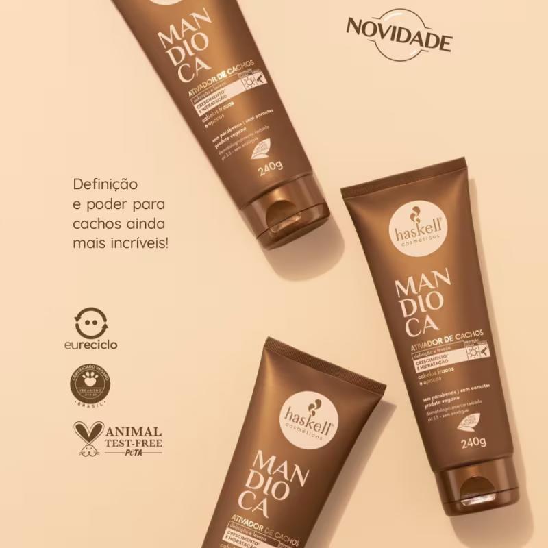 A linha Mandioca é rica em vitaminas e nutrientes essenciais para o fortalecimento e crescimento saudável dos fios. O extrato de mandioca é um ativo rico em vitaminas A e C e minerais importantes para a saúde dos cabelos, que fortalece e tem alto poder hidratante.