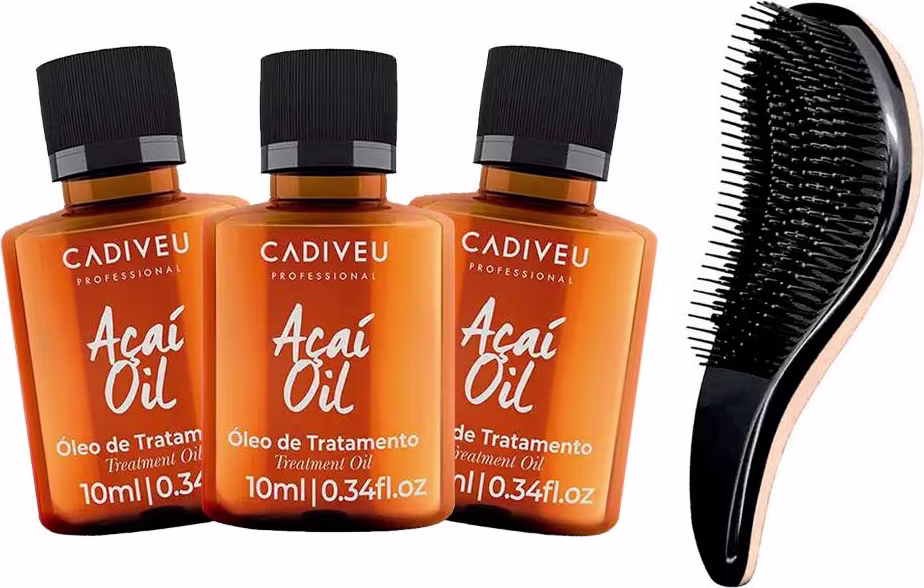 Cadiveu Professional óleo de tratamento Açai Oil é um finalizador em óleo versátil e multifuncional. Sua fórmula restaura de nutre os cabelos danificados e sela as pontas duplas. Possui proteção térmica, e garante maciez, brilho e flexibilidade para os cabelos mantendo os fios leves e macios.
