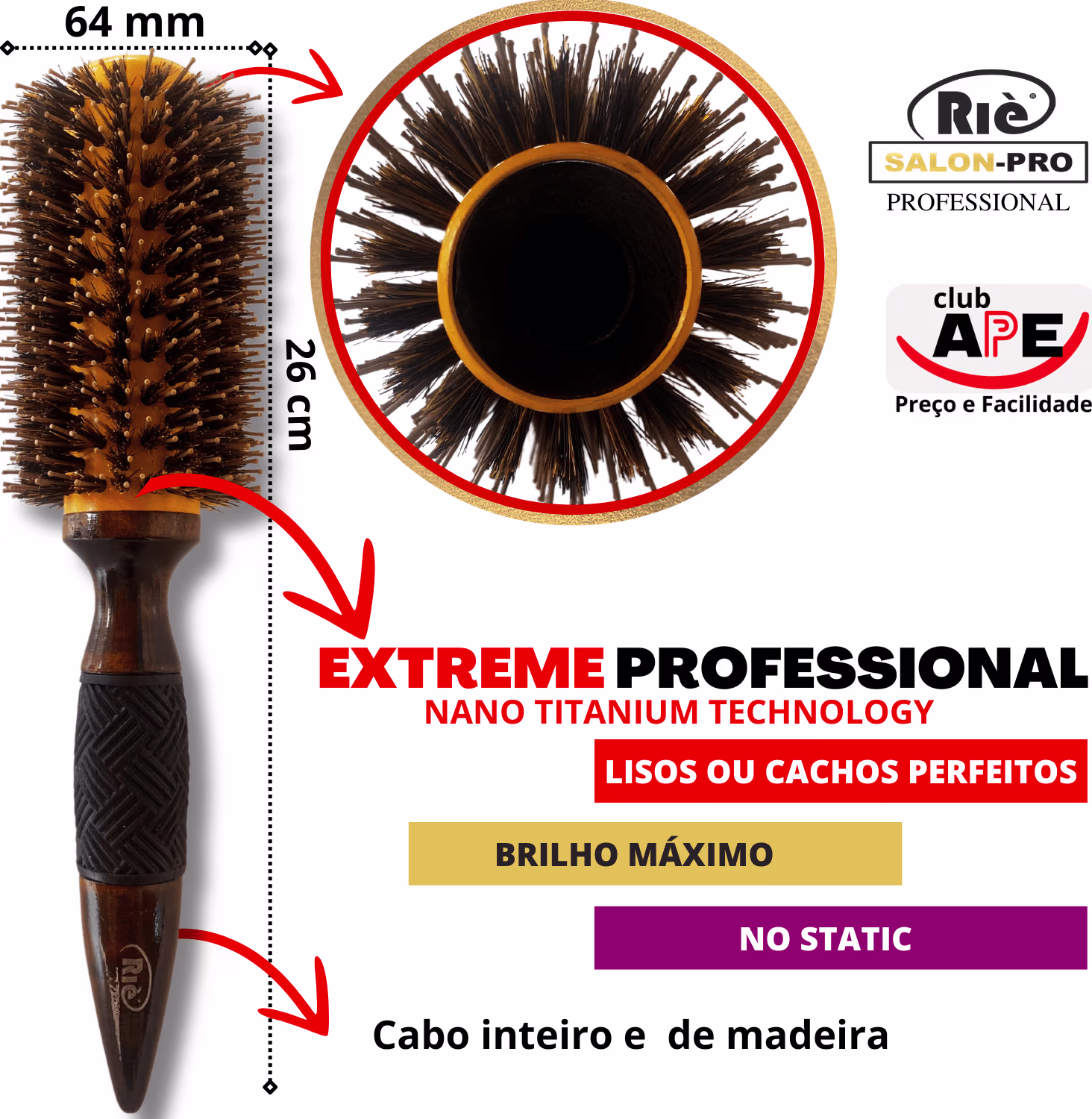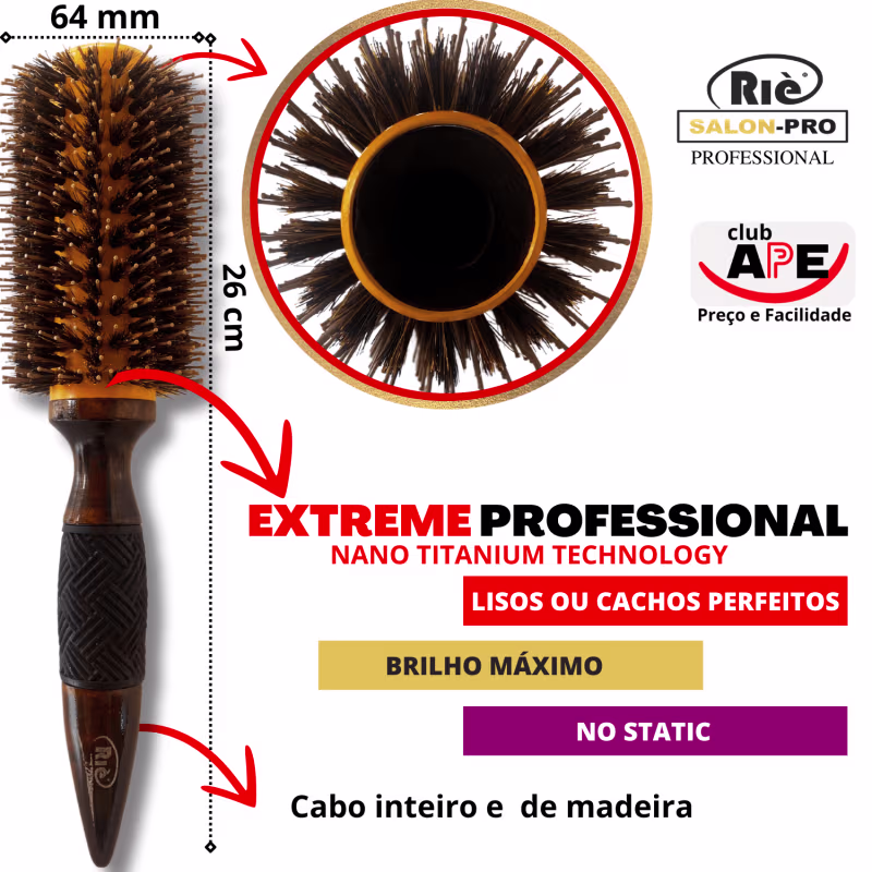 KIT 1 ESCOVA PROFISSIONAL NANO 64 MM + PINCEL RIE SALON PRO