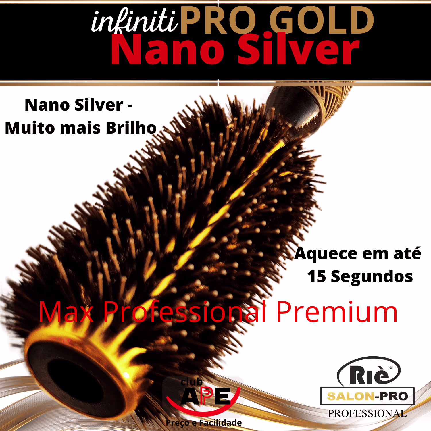 KIT COMPOSTO POR: 01 Escova INFINITI Pro Gold Nano Silver 57 mm + 01 Escova INFINITI Pro Gold Nano Silver 64 mm + 01 Pincel de Tintura Ultra-Largo