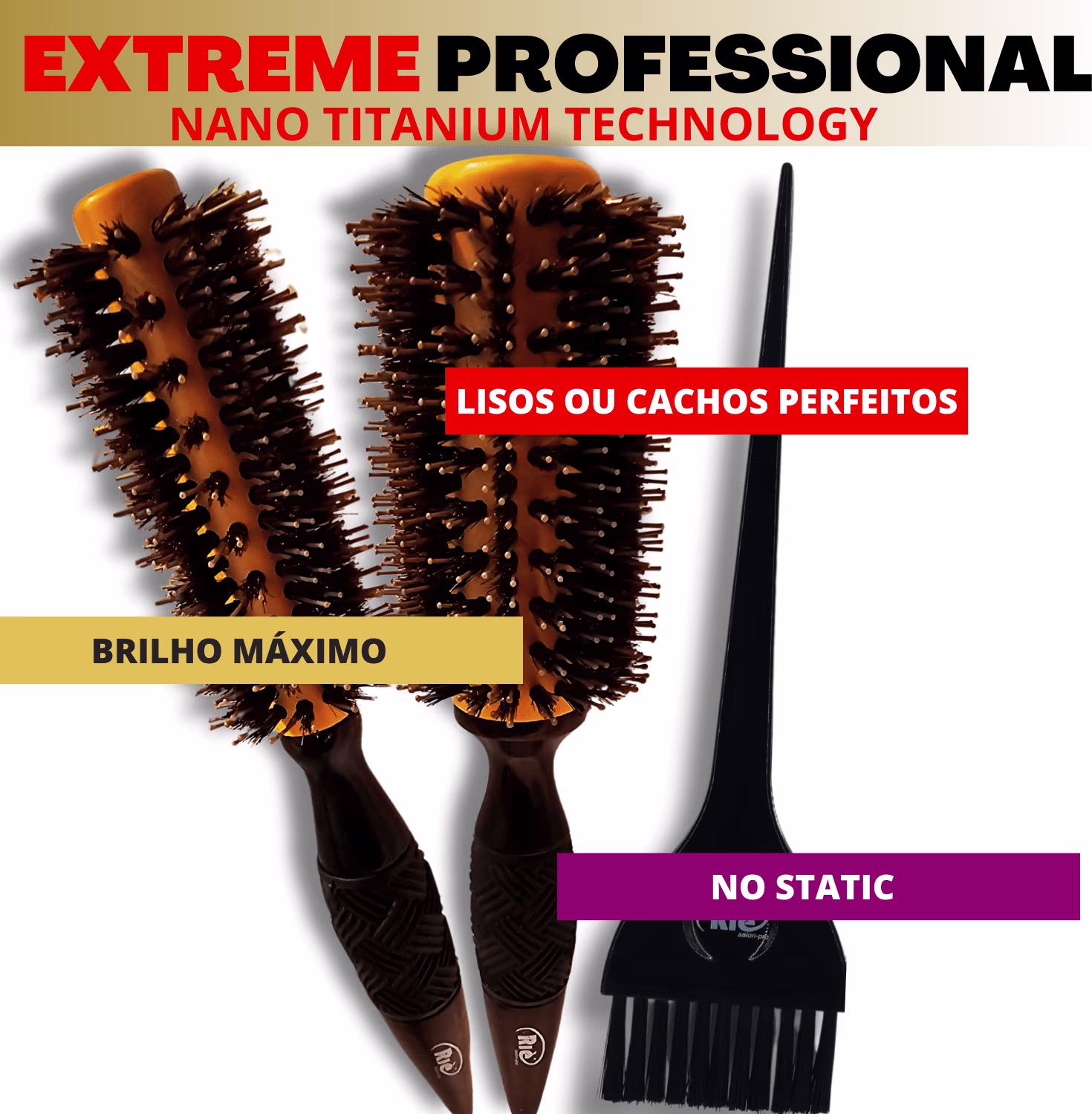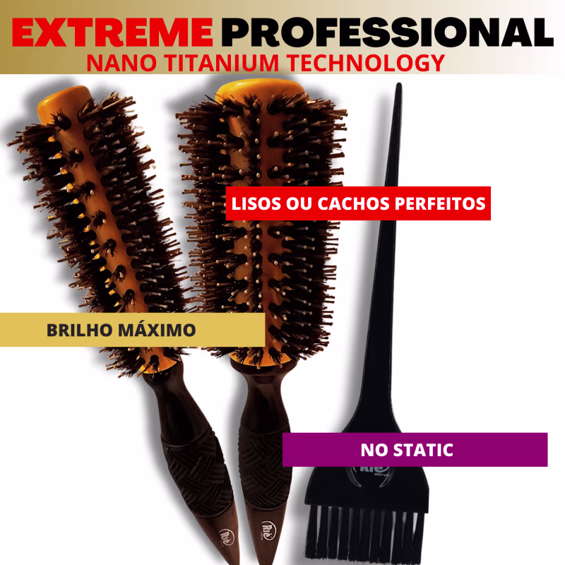 KIT COMPOSTO POR: 01 Escova Extreme Professional Nano Titanium Technology 57 mm/ 01 Escova Extreme Professional Nano Titanium Technology 64 mm / 01 Pincel