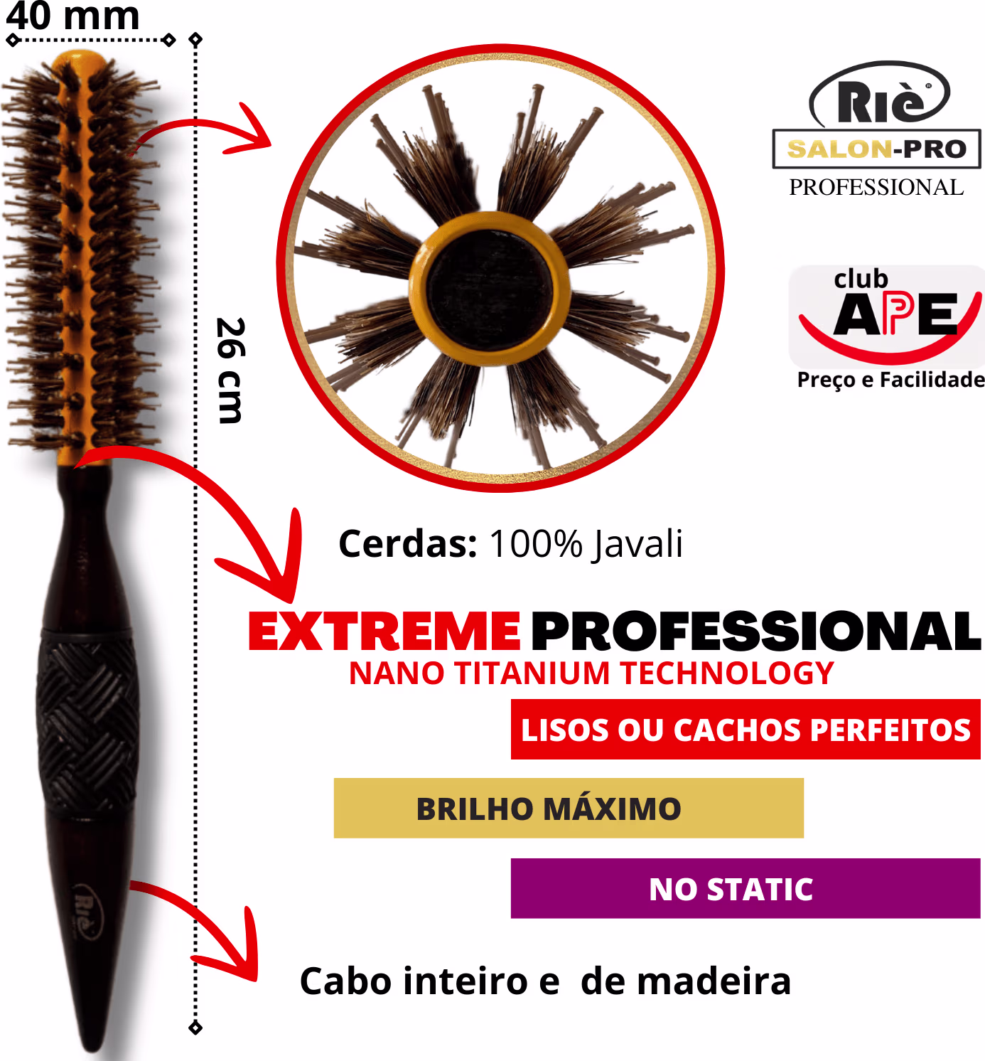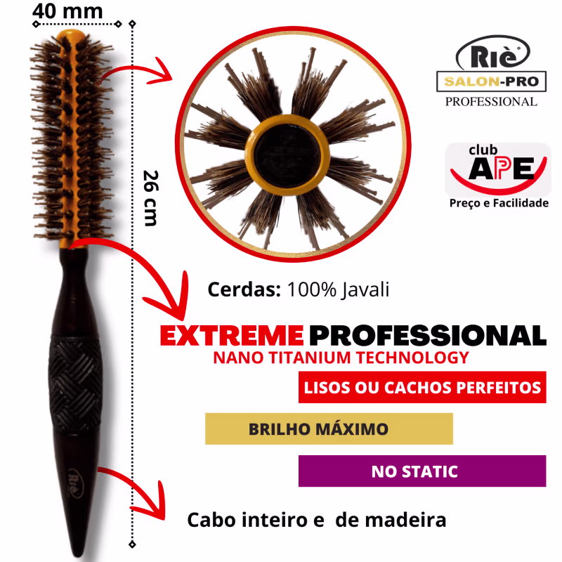 KIT COMPOSTO POR: 01 Escova Extreme Professional Nano Titanium Technology 40 mm / 01 Escova Extreme Professional Nano Titanium Technology 47 mm / 01 Escova Extreme Professional Nano Titanium Technology 57 mm / 01 Pincel