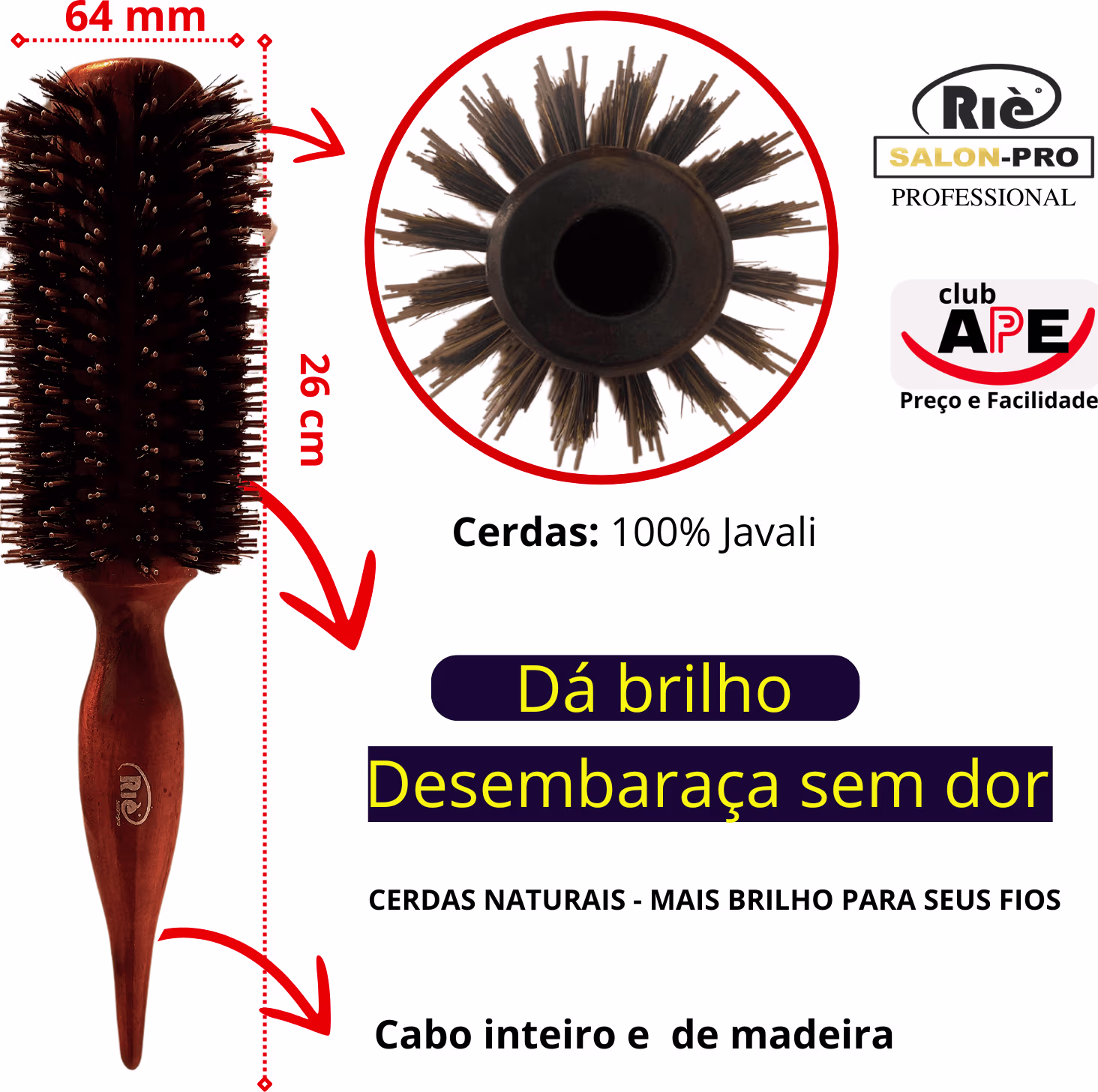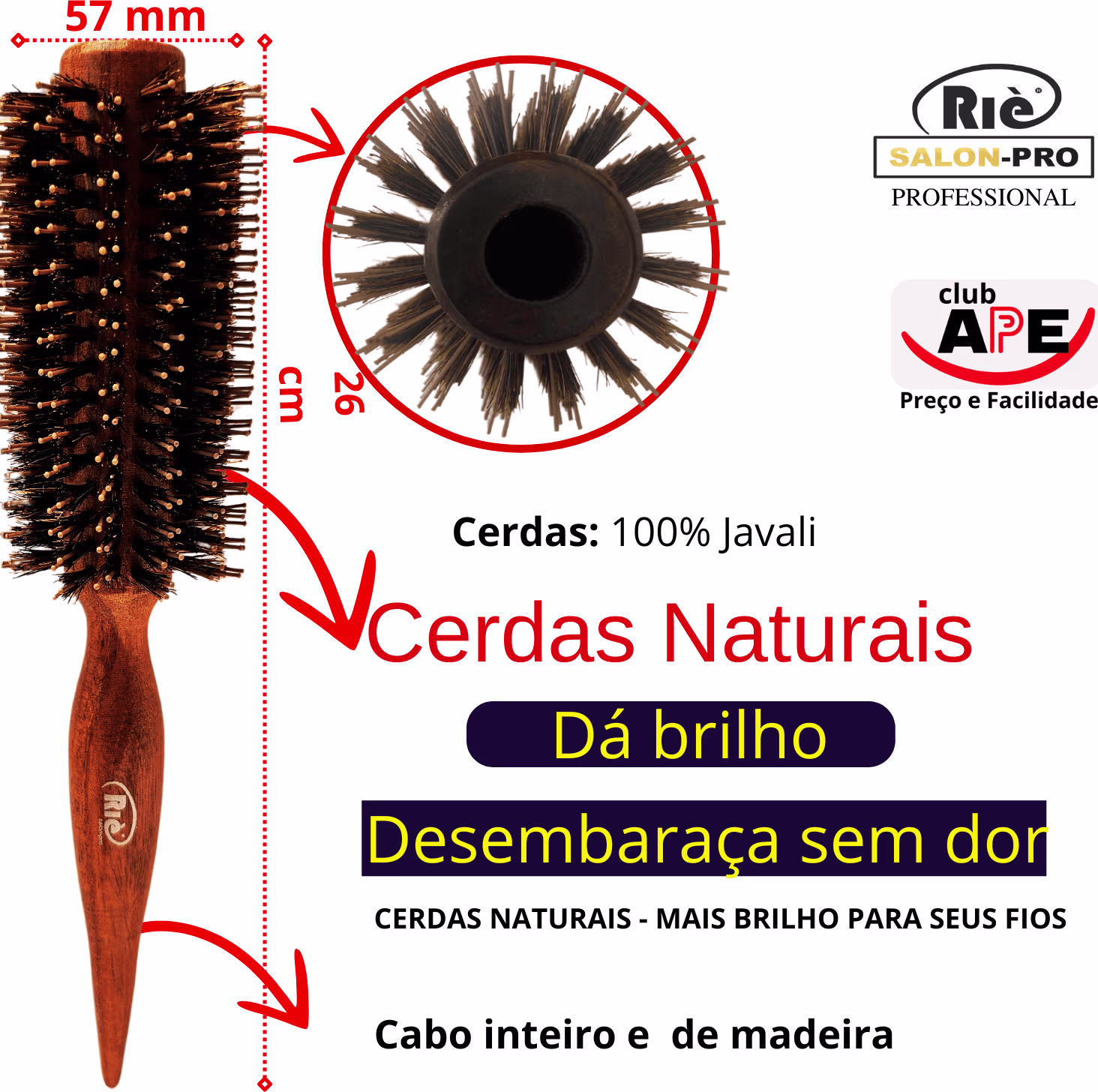 KIT COMPOSTO POR: 01 ESCOVA DETANGLING PRO 47 MM + 01 ESCOVA DETANGLING PRO 57 MM + 01 ESCOVA DETANGLING PRO 64 MM