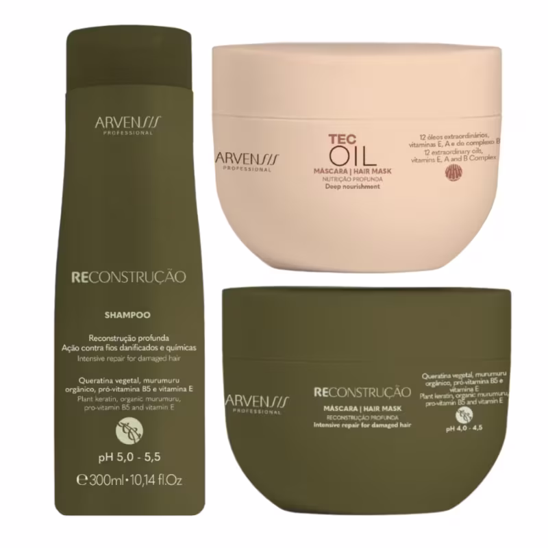 Com uma associação de 12 óleos preciosos e lendários, obtidos a partir de nozes, sementes, ervas e frutos, a linha Tec Oil foi desenvolvida para tratar os fios agredidos por agentes externos, desde a exposição ao sol e poluição até intervenções químicas que danificam a estrutura capilar.