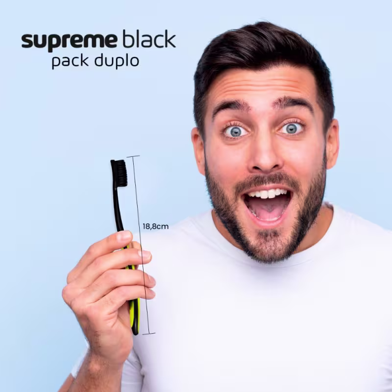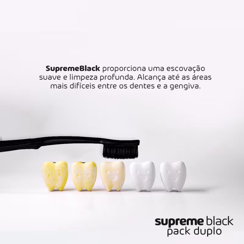 Não sei o CEPCom suas excepcionais cerdas ‘ULMA’, de pontas ultra finas, a escova SupremeBlack proporciona uma escovação suave e limpeza profunda. Alcança até as áreas mais difíceis entre os dentes e a gengiva.