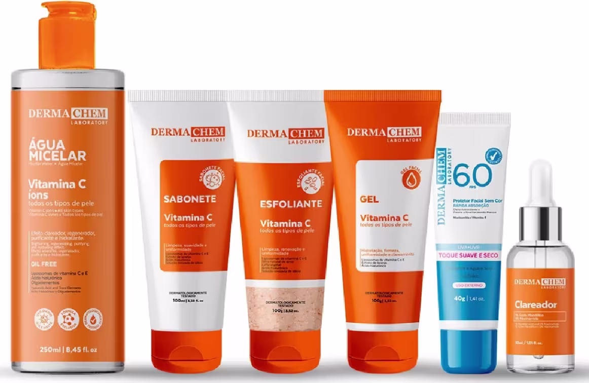 Kit Skincare Completo Vitamina C Dermachem Clareador e Protetor Solar Facial