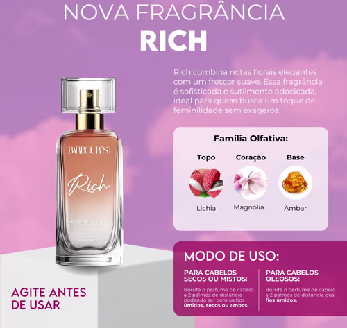 Perfume Capilar E Finalizador Termoativo Rich - Barbour's Beauty - 50ml Spray Ver mais ❯