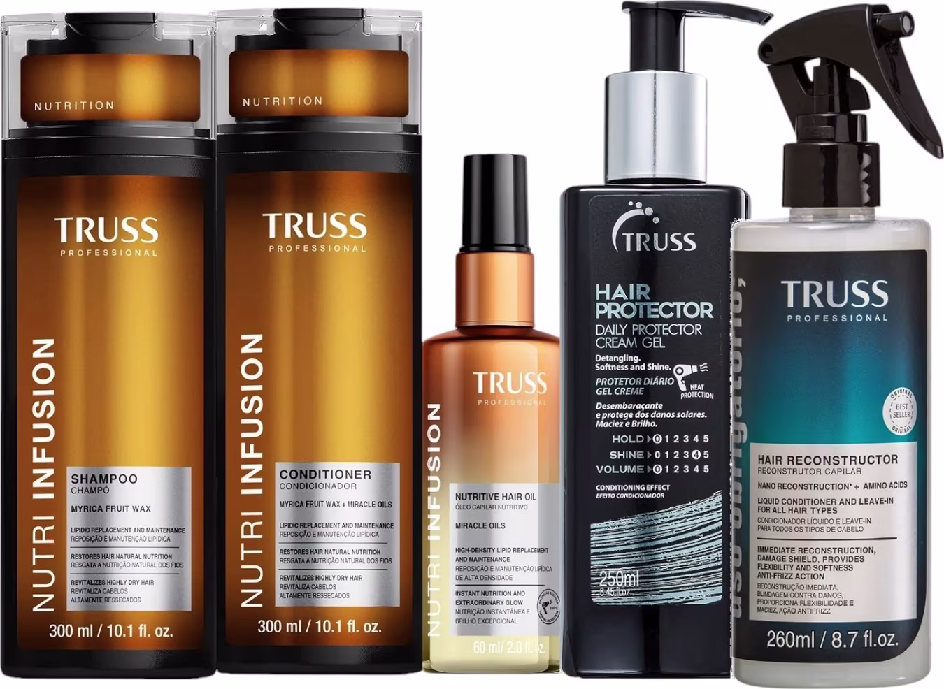 Kit Truss Nutri Infusion - Shampoo 300ml + Condicionador 300ml + Óleo 60ml + Hair Protector 250ml + Uso Obrigatório Spray 260ml