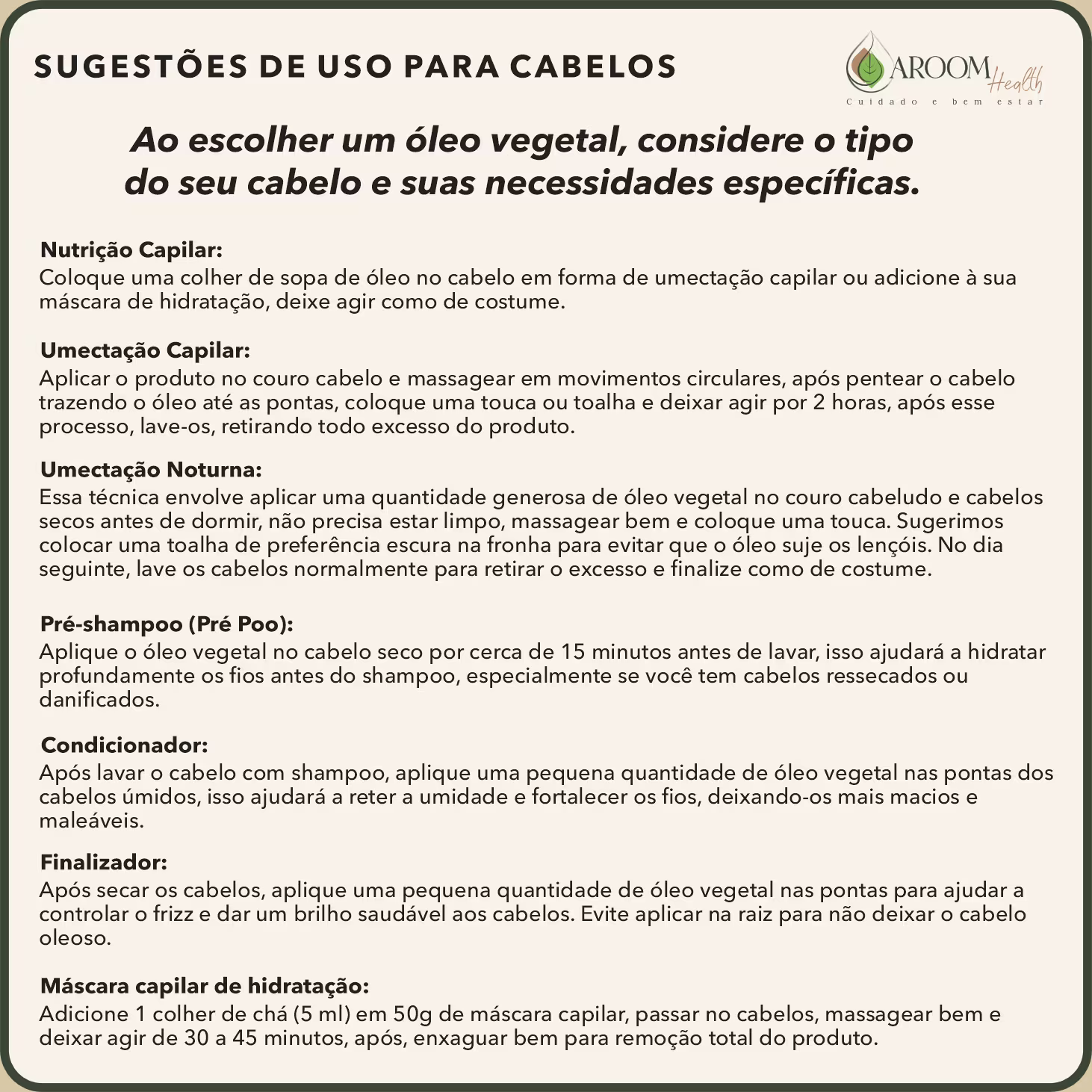 *Pode ser usado como óleo carreador com óleos essenciais.