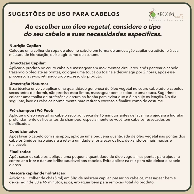 *Pode ser usado como óleo carreador com óleos essenciais.