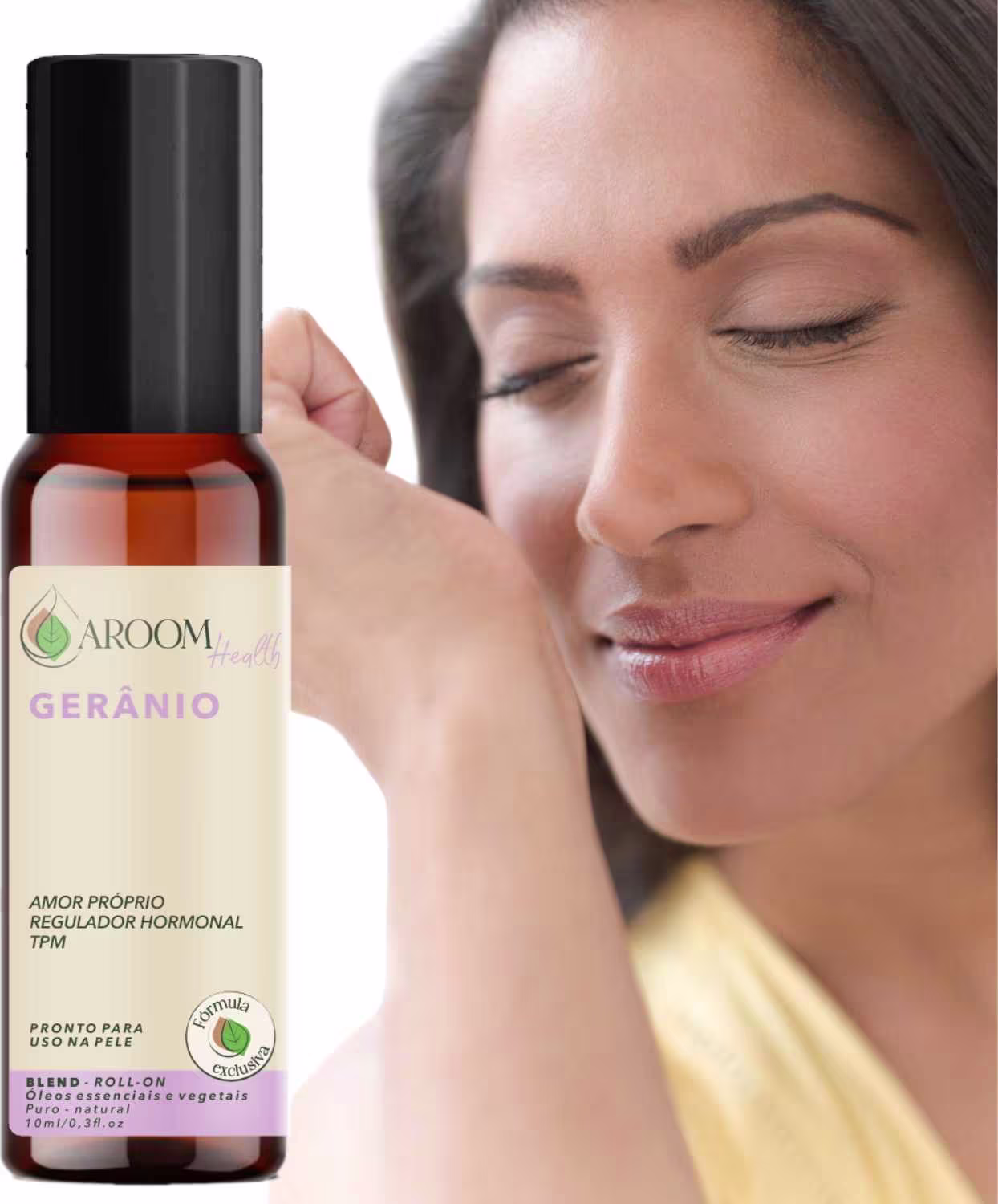 Fórmula exclusiva - Blend óleo essencial Gerânio - Roll - on 10 ml Aroom Health.