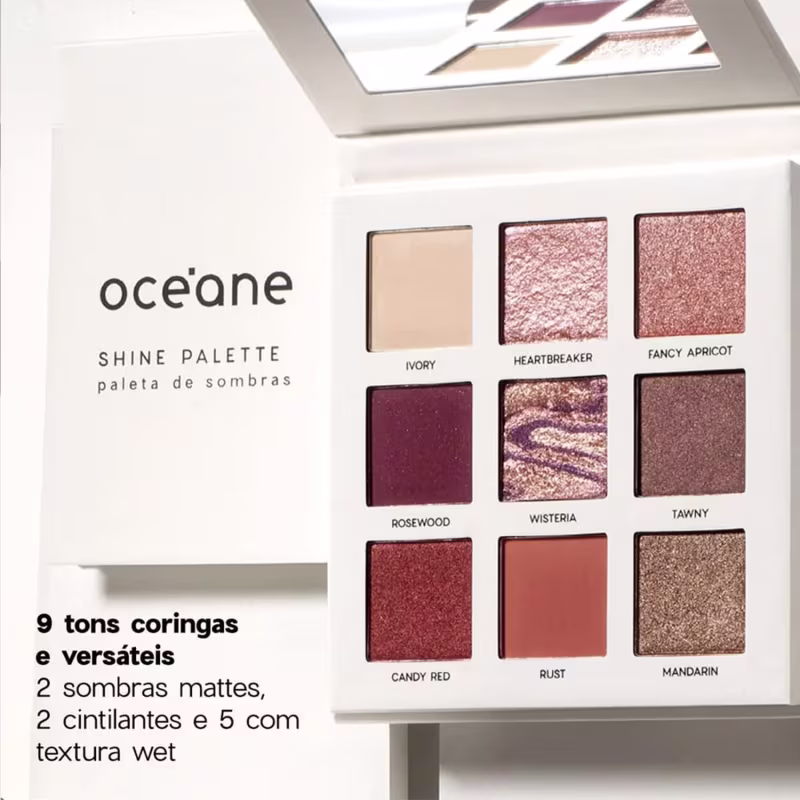 A marca brasileira Océane foi criada para realçar o estilo da mulher conectada e de atitude, apaixonada por tudo relacionado à beleza e moda. Os produtos da marca trazem praticidade, alta tecnologia e fórmulas poderosas para facilitar o dia a dia da mulher moderna. A Océane acredita que toda mulher tem o poder transformador e a força de ser a protagonista de sua vida, para descobrir seu próprio encanto. Por isso desenvolve maquiagens, esmaltes e acessórios que valorizam a beleza e despertam a autoestima de seu público.