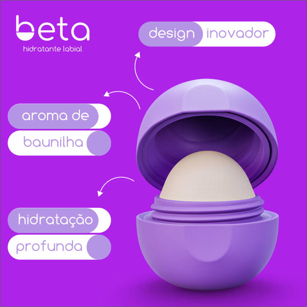 Inclua a hidratação dos seus lábios e mãos em sua rotina de saúde, bem-estar e beleza. Experimente Beta e permita-se sentir a diferença. Beta proporciona o cuidado indispensável de forma prática e com efeito prolongado. Beta é um poderoso hidratante, feito com ingredientes naturais, sem óleos minerais, com toque seco mas com profunda hidratação. Com design de “bolinha”, é mais prático e sofisticado, um produto único e nacional. São 11 versões de hidratantes labiais e 5 versões de hidratantes para mãos. Escolha o seu e experimente! BETA vai revolucionar o jeito de cuidar e proteger os lábios, através de novas sensações, e descobrindo que é possível hidratar com sofisticação, estilo e praticidade.