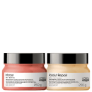 Kit de tratamento com máscaras para cabelos danificados, frágeis e quebradiços. L'Oréal Professionnel Serie Expert Absolut Repair Inforcer Duo I ajuda a recuperar a beleza e a saúde dos fios.