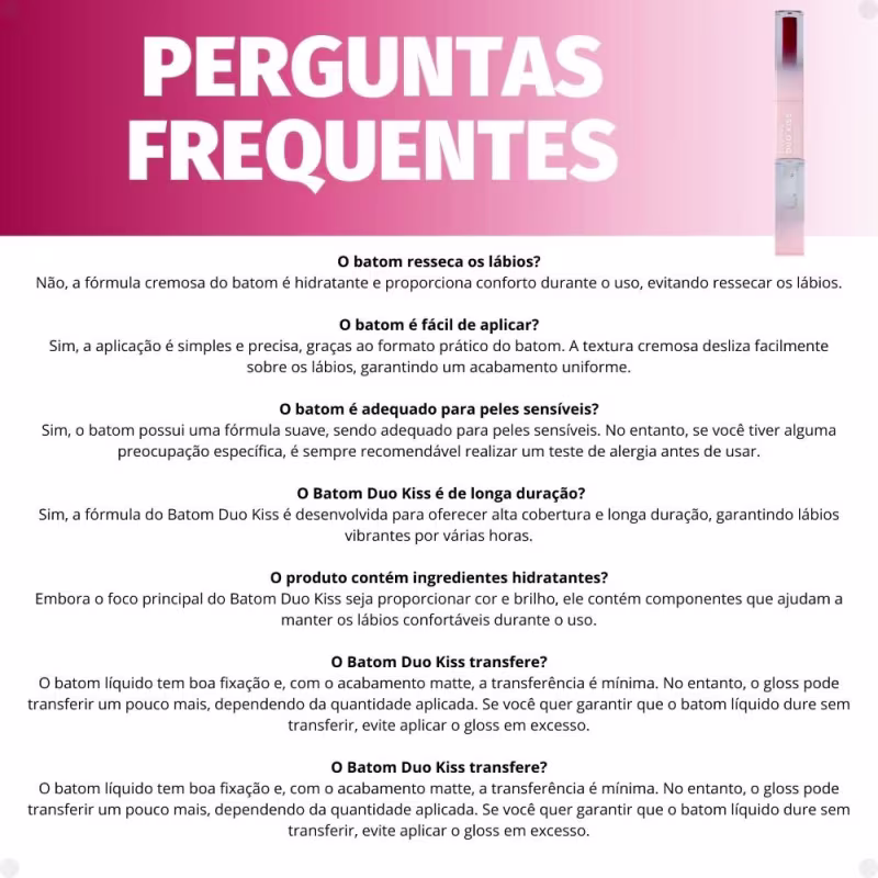 Sim, o batom possui uma fórmula suave, sendo adequado para peles sensíveis. No entanto, se você tiver alguma preocupação específica, é sempre recomendável realizar um teste de alergia antes de usar.