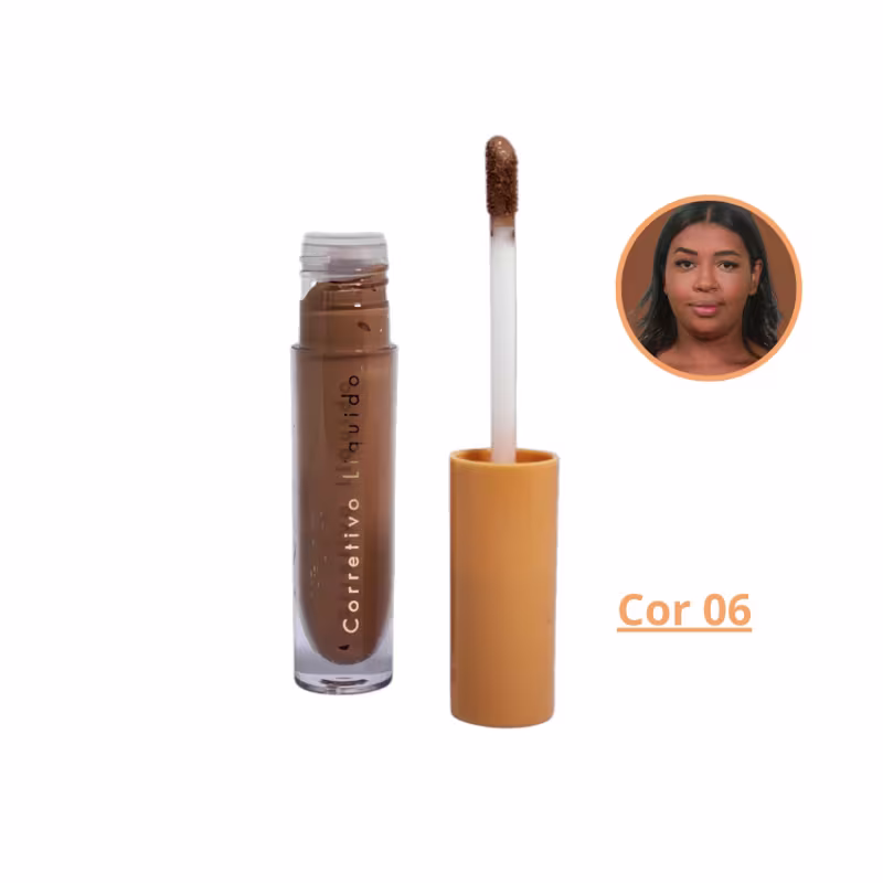 Corretivo líquido resistente à água e ao suor, não marca linhas de expressão e cobre sem pesar.