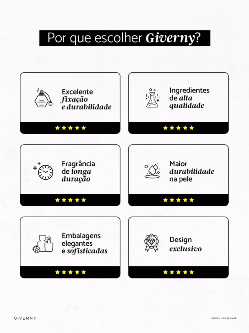 A Giverny French Privée Club é uma nova marca de perfumes importados, inspirada nos belos jardins de Giverny, situada ao norte da França, resgatando toda memória olfativa e afetiva que esse lugar exuberante carrega em si. Misturando versatilidade e custo benefício, Giverny French Privée Club se difere das marcas da mesma categoria por apresentar componentes naturais em sua composição, o que resulta em perfumes com: nota de topo, coração e fundo. Projetado e desenvolvido no Reino Unido, as fragrâncias são produzidas na Índia e importados por Quattror Comercial Ltda. Giverny é uma cidade situada no Norte da França, acima de Paris, na região da Alta Normandia. Foi palco das principais obras-primas de Claude Monet, referência da arte impressionista, ali ele residiu até o fim da vida, ligando-a à arte e ao lirismo que evidenciam seu charme, sua calma e paz. Local emoldurado por um cinturão natural, repleto de verde e muitas flores com suas paisagens bucólicas e inspiradoras. Foi desse lindo jardim que a Giverny busca referências de cheiros e cores na composição de cada uma de suas fragrâncias.