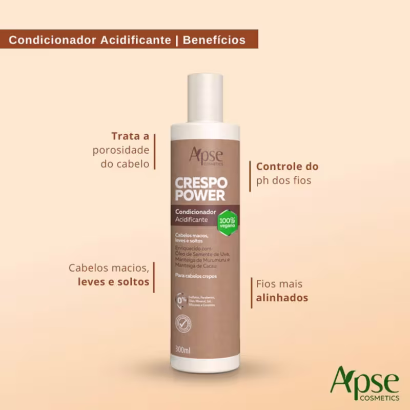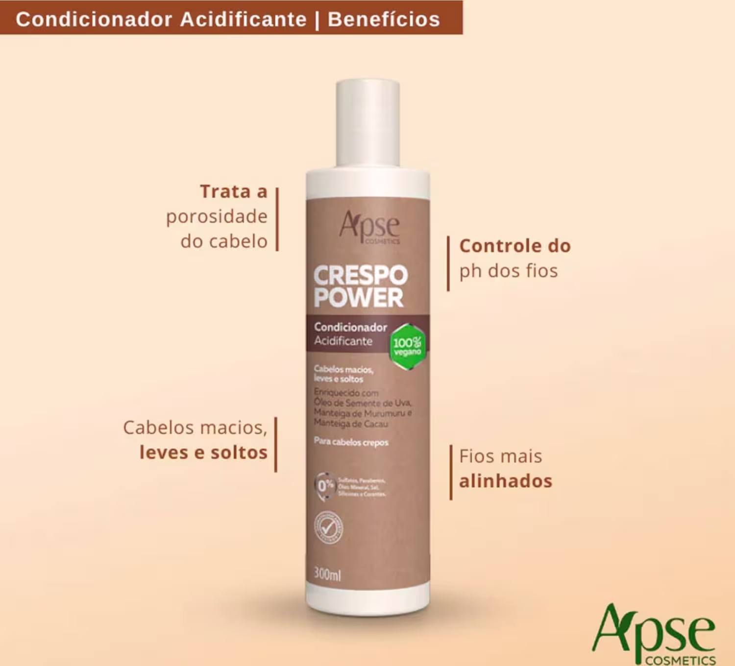 MODO DE USO: Aplique uma quantidade suficiente do Shampoo Crespo Power e massageie bem no couro cabeludo. Enxágue bem e repita a aplicação.