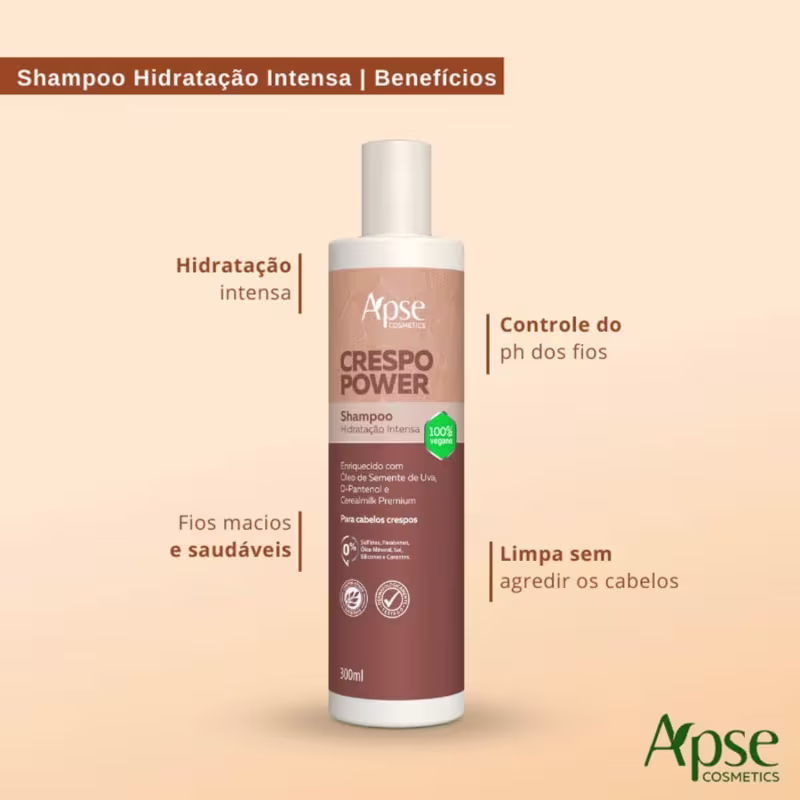 O Shampoo Crespo Power contém fórmula de hidratação itensa, deixando seus fios macios e saudáveis.