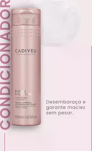 O Kit Cadiveu Repair Solution com Shampoo e Condicionador é ideal para a limpeza e hidratação diária dos cabelos danificados. Sua fórmula avançada fortalece a fibra capilar, reduzindo a quebra e o frizz, além de proporcionar brilho intenso e maciez prolongada.