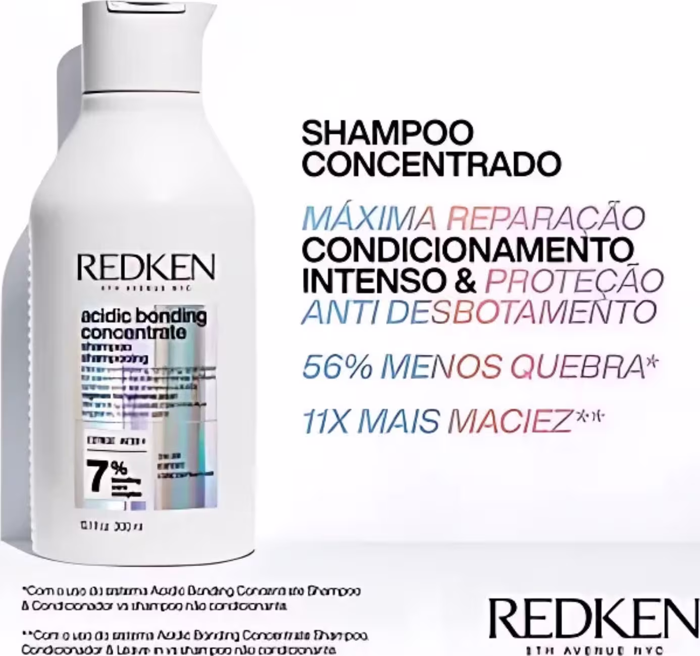Ácido Cítrico + Redken Bonding Care Complex: promovem resultados instantaneamente visíveis, que resulta em 82% menos pontas duplas, 56% menos quebra e 11x mais maciez.