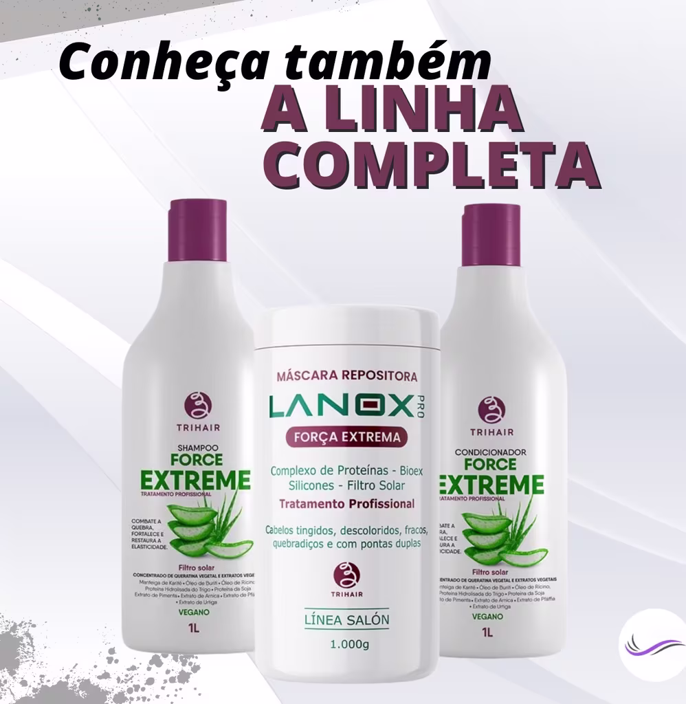 01 Shampoo Profissional 1kg + 01 Condicionador Profissional Força Extrema Lanox Trihair 1kg