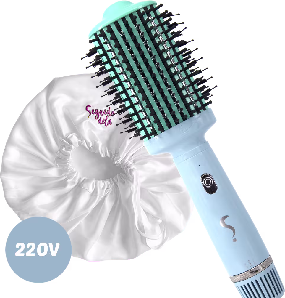 O Segredo Dela é que uma parte funciona como escova secadora! Com cerdas e tufos desenvolvidos especialmente para a diversidade dos cabelos das brasileiras. Importante frisar que você deve usar com os cabelos úmidos e não encharcados. E o outro lado funciona como pente alisador ou chapinha, formado por cerdas não-flexíveis em tecnologia PTC (PTC é uma tecnologia segura de aquecimento, formada por pequenas peças de cerâmica prensadas entre duas placas de metal) chegando a esquentar até 200ºC. Este lado deve ser usado com os cabelos secos!
