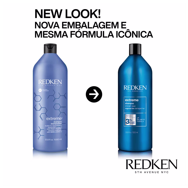 Redken Extreme - Shampoo 1L: remove as impurezas, proporcionando força e resistência às fibras capilares. O cuidado começa no interior dos fios.